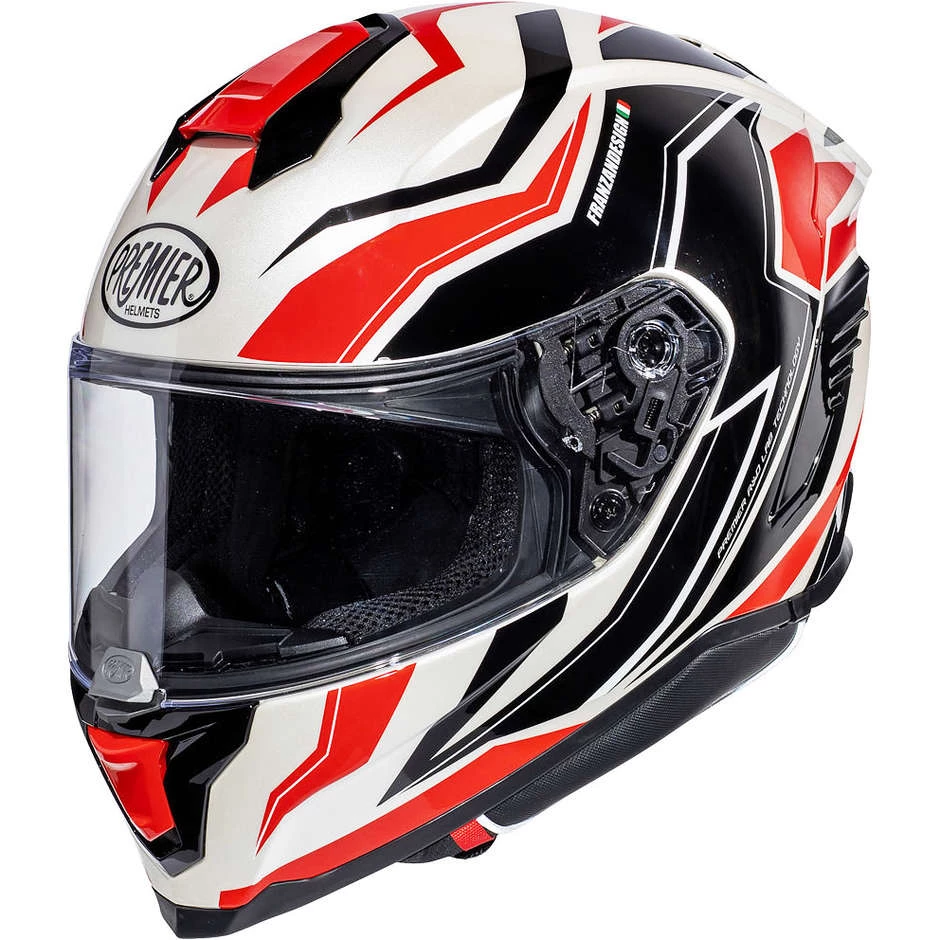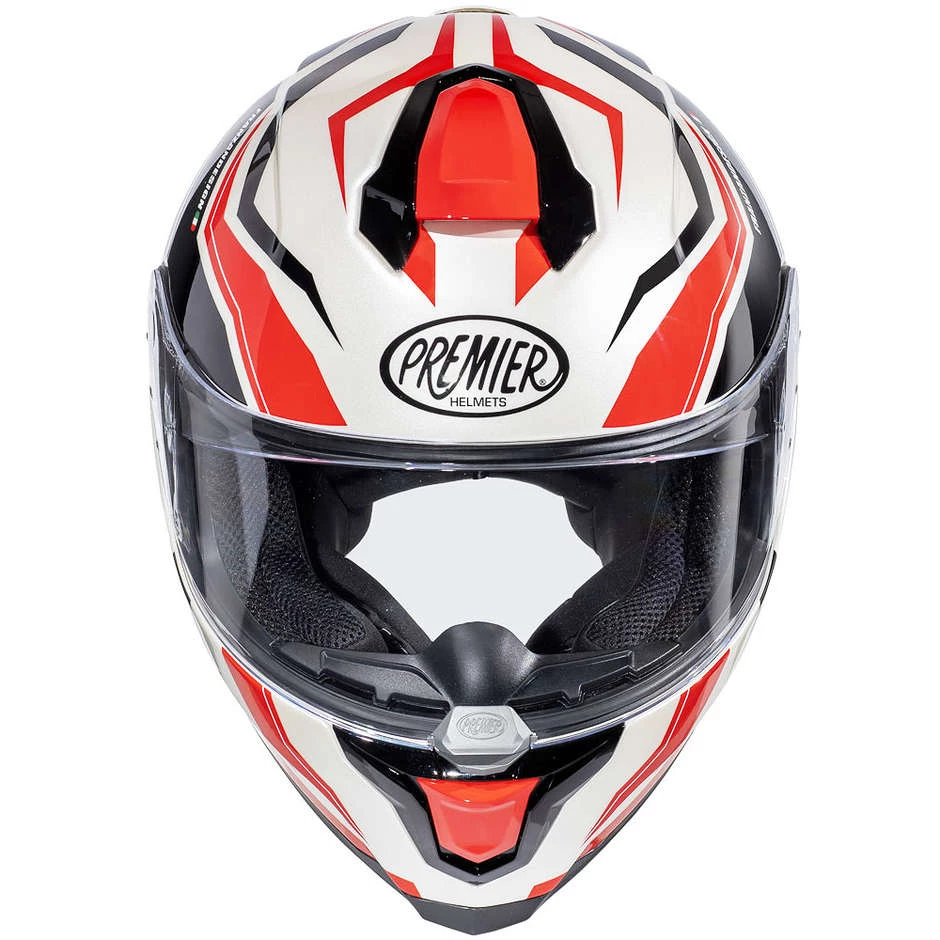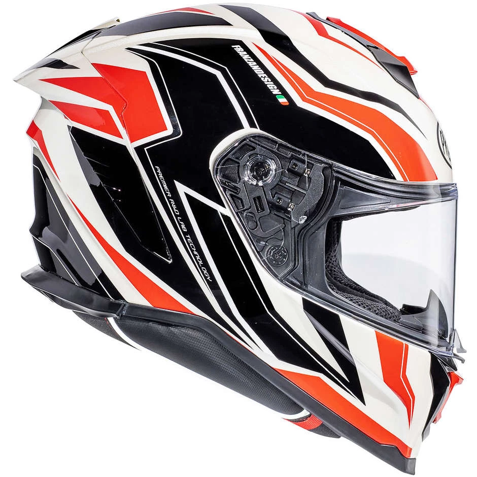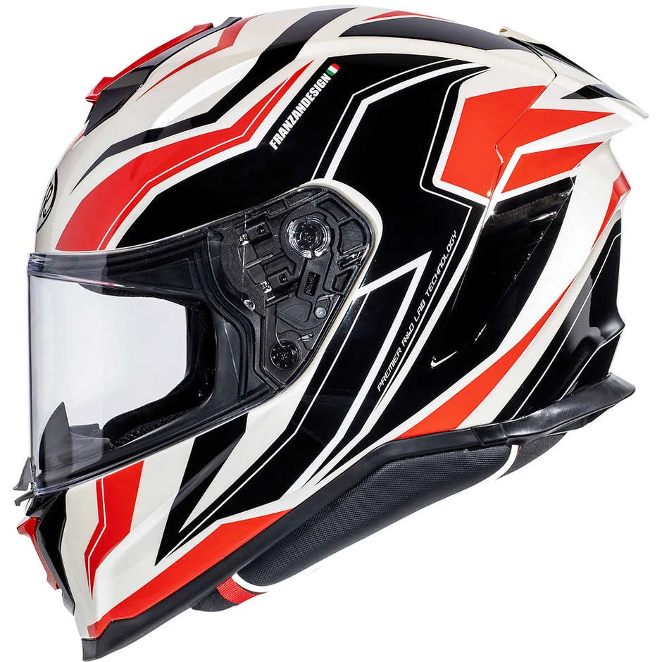 Casque De Moto Intégral En Fibre Premier HYPER RW2 Blanc Noir Rouge