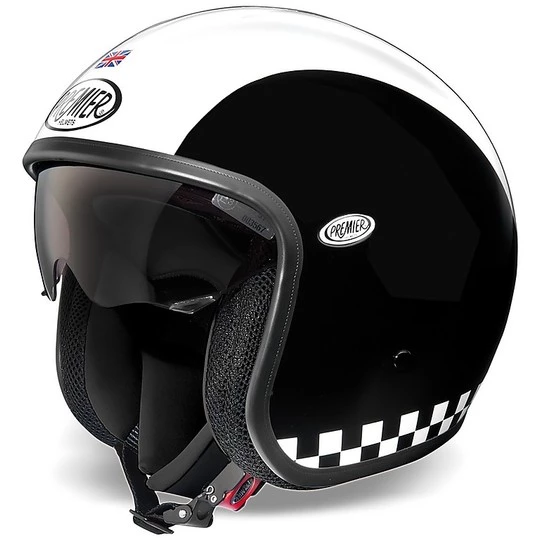 Casque de moto Jet Vintage en fibre Premier VINTAGE EVO Retro blanc noir