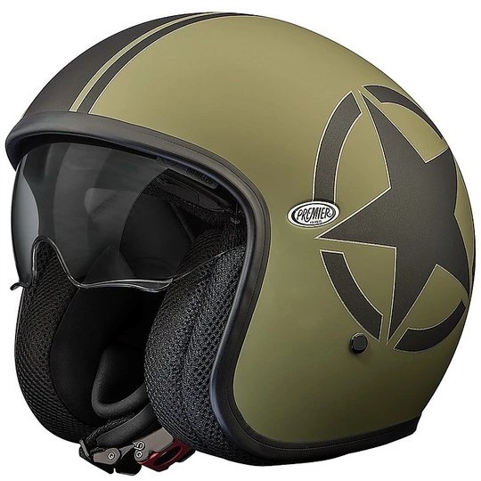 Casque de moto Jet Vintage en fibre Premier VINTAGE EVO Star Military Green Bm Matt Green