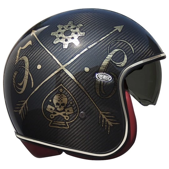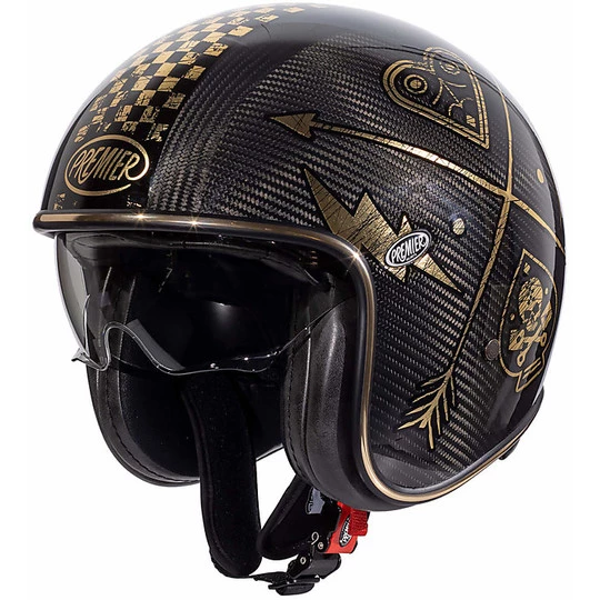 Casque de moto Premier Vintage Jet en carbone VINTAGE EVO Carbon NX GOLD CHROMED