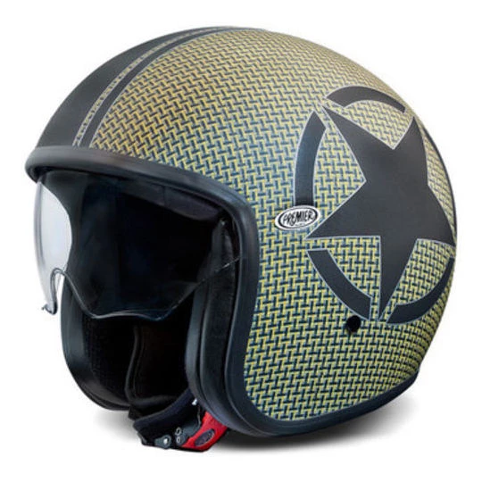 Premier propose un nouveau casque jet appartenant à la collection 2011. Vintage, un jet à la forme attrayante qui répond aux plus récentes demandes de style et de mode. Enveloppant, collectionné et avec de beaux graphismes classiques, le Vintage convient à une utilisation urbaine, pour ceux qui veulent un casque beau et à la mode, mais qui ne veulent pas renoncer à la sécurité. La coque du jet Vintage est en fibre de carbone. La même composition que Premier adopte sur tous ses casques et qui découle de la grande expérience que l’entreprise italienne a acquise au fil des ans dans l’étude et l’utilisation des fibres composites. La coque intérieure est en eps, imprimée en différentes densités, pour une meilleure absorption des impacts. Le nouveau Premier Vintage a une visière noire rétractable logée entre les deux capuchons internes et externes qui peuvent être facilement actionnés.
