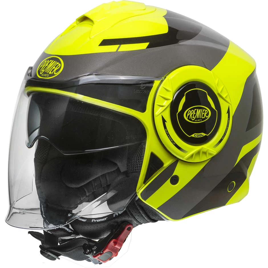Casque Moto Premier Jet COOL OPT FLUO Noir Gris Jaune Fluo