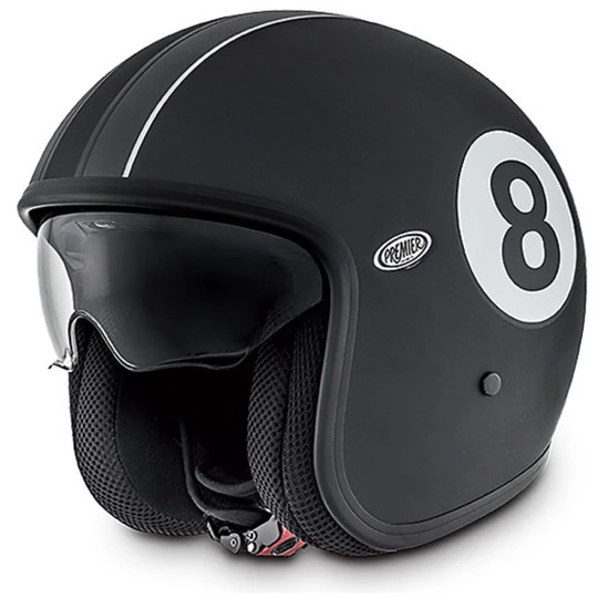 Casque Moto Vintage Jet Fibre Premier Avec Visière Intégrée Eigth 9BM Matt Black